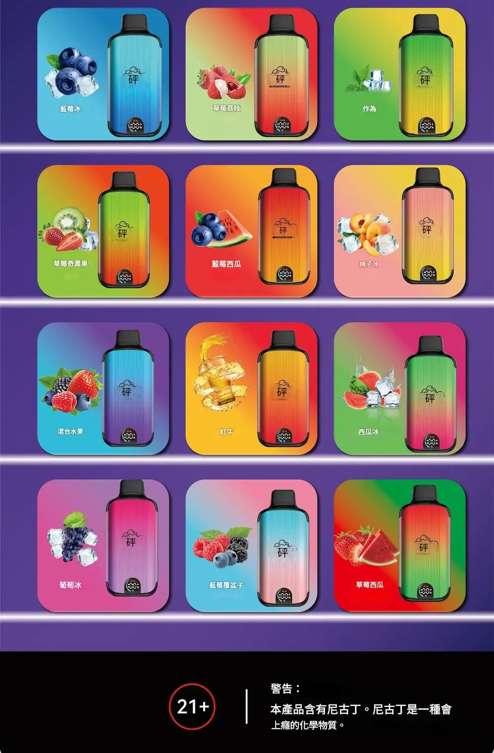 - 多樣化口味:提供 16 種不同口味,如經典薄荷、草莓香蕉、藍莓冰沙、西瓜冰沙等,滿足不同用戶的口味需求。
