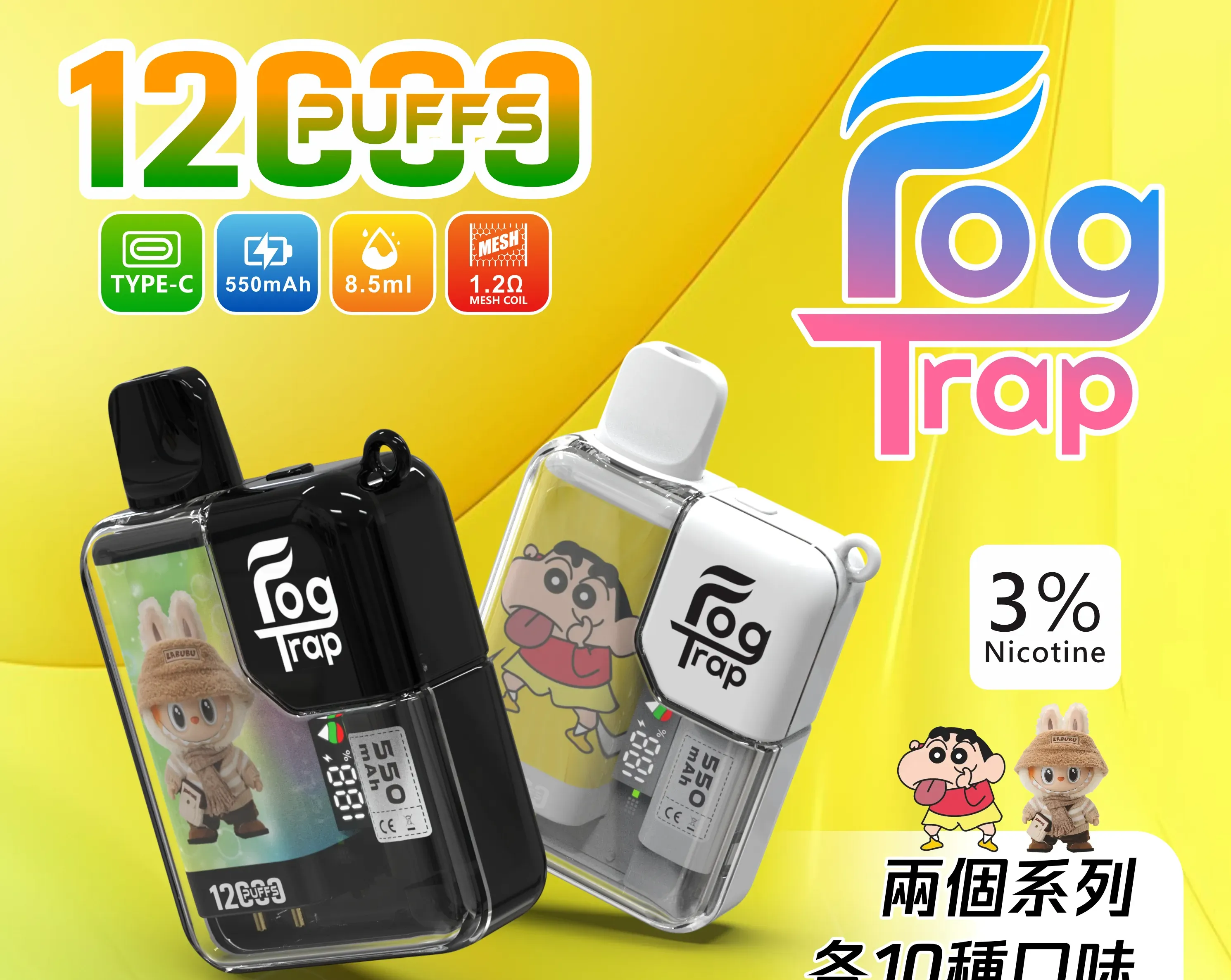 Fog Trap 推出全新聯名款 12000口一次性電子煙,以大容量與高質感設計著稱,為追求便利、穩定與時尚外觀的使用者打造最佳選擇。